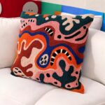 This modern pattern multicolored hand tufted punch pillow cover is made of cotton blended acrylic yarn and natural cotton fabric. It can be a unique and modern gift for you and your loved ones.