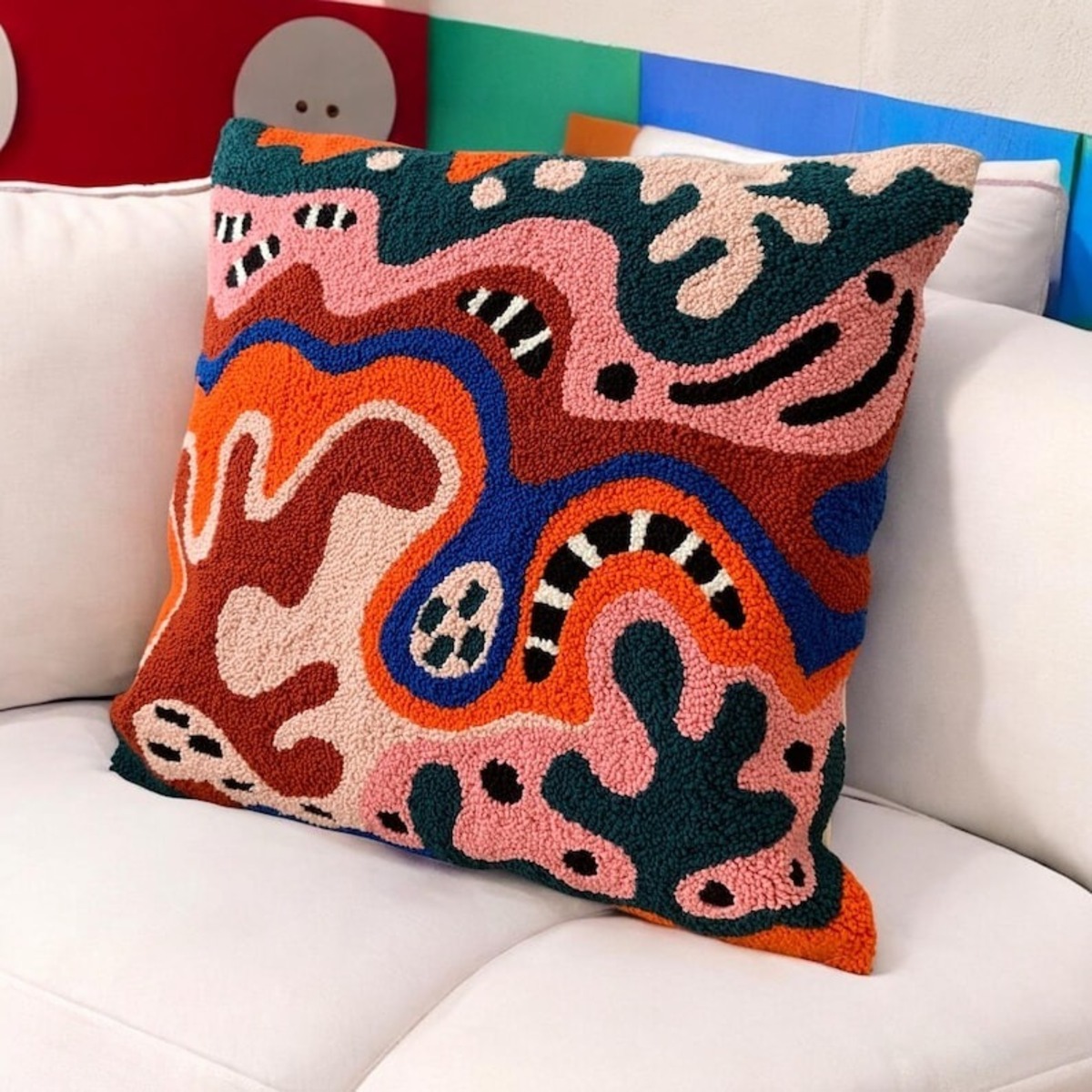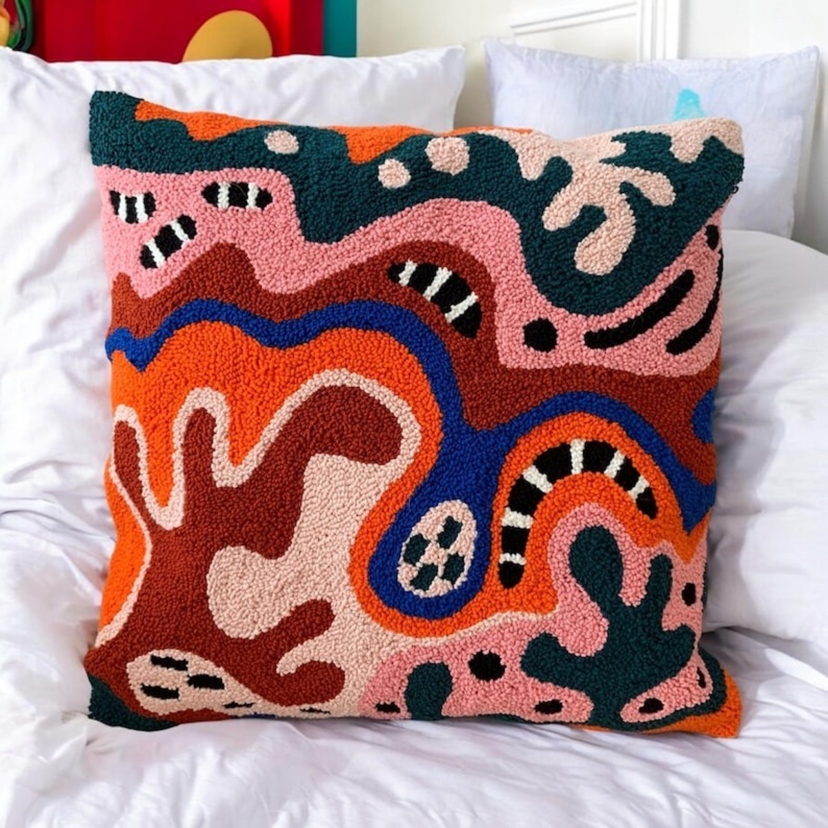 • Punch Pillow , Hand Tufted Punch Needle Pillow Cover / Psychedelic Modern Multicolored Punch Pillow / Handmade Unique Embroidered Cushion